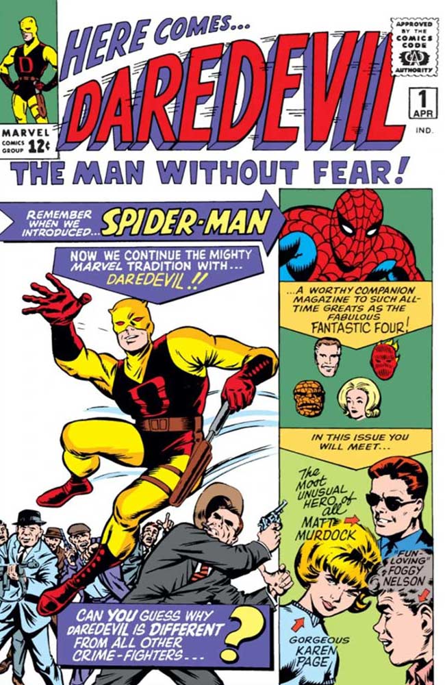 Part of this story is fairly certain: Marvel Comics had come into their own and publisher Martin Goodman wanted to publish two new books that capitalized on his own success for once, not someone else’s. Goodman had a habit of copying whatever was selling for other comics publishers, ad infinitum; if one cowboy comic did well, five would be even better, hence Two-Gun Kid, Rawhide Kid, Outlaw Kid, Ringo Kid, and the imaginatively titled Kid Colt, Outlaw. Both Fantastic Four and Amazing Spider-Man were doing great business for the publisher, so naturally he wanted another superhero team and another solo hero like Spidey. On the latter, he very specifically wanted the new character to be called Daredevil, after the old Golden Age comic published by Lev Gleason. Goodman evidently felt that was a great name for a hero that had a proven publishing track record.