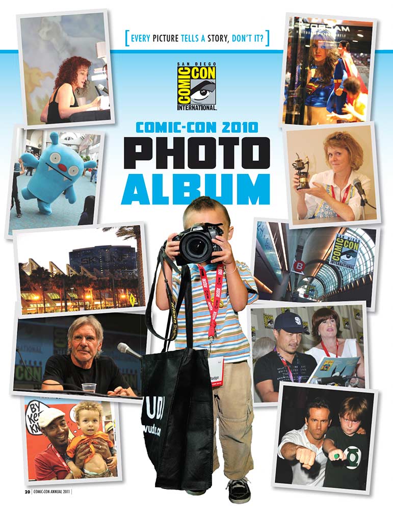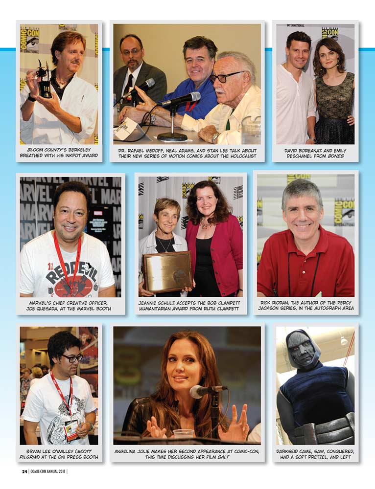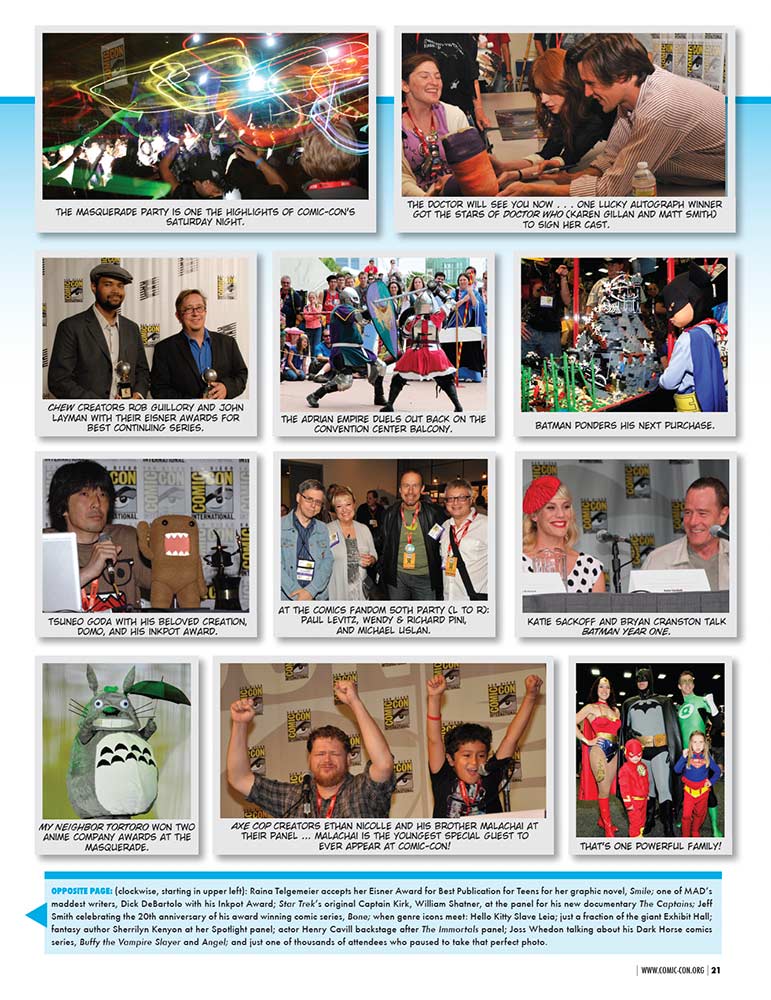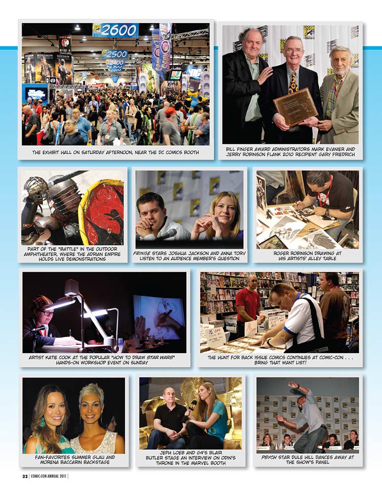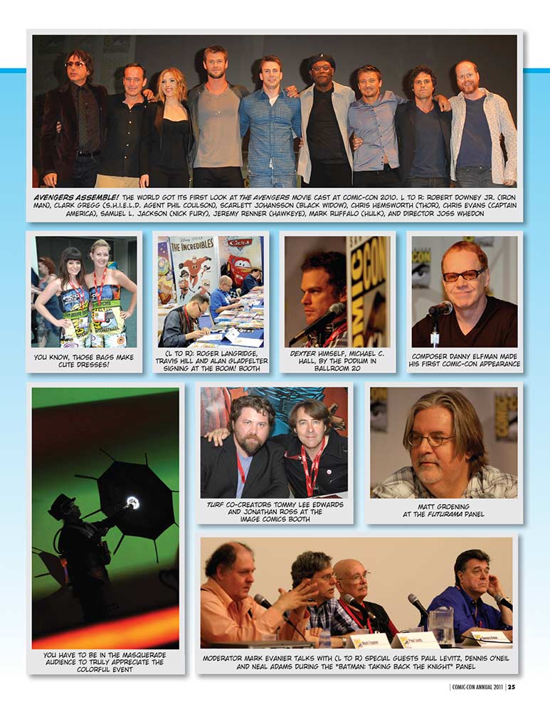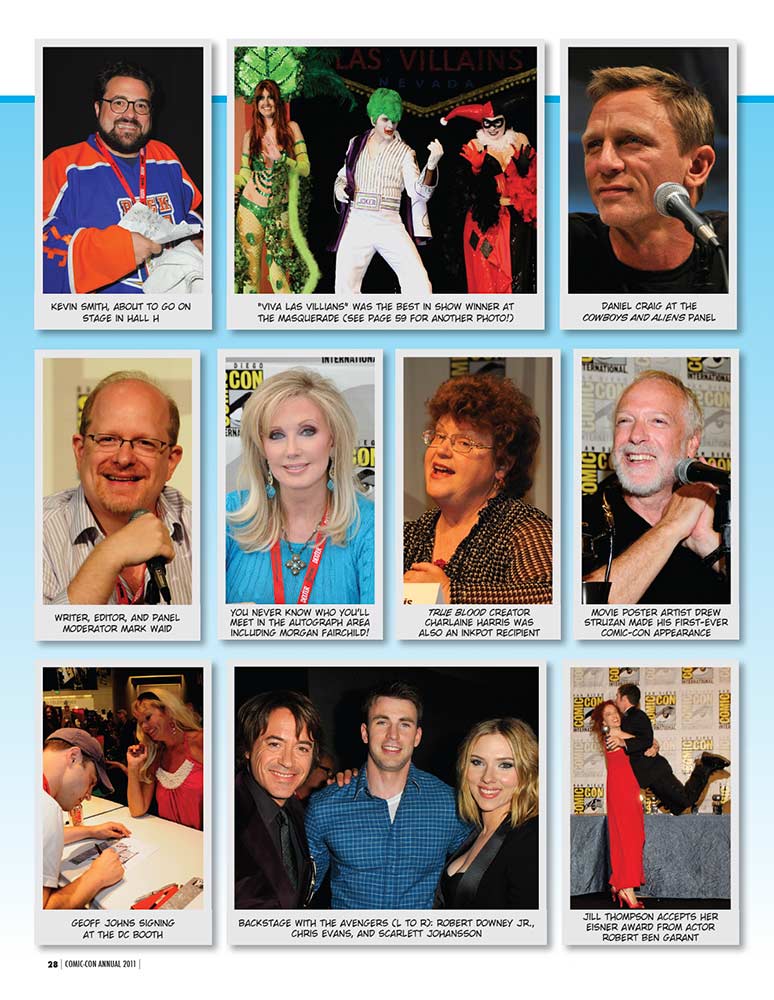 Having the “extra real estate” of more pages also allowed me to stretch out the photo recap for the previous year’s (2010) Comic-Con. Instead of doing specific sections (Comics, Movies & TV, Masquerade, etc.) like I did in Comic-Con Magazine, I did one big photo album in both issues, utilizing a mix of photos on each page from all of the many facets of the event. I think this format was actually more successful, since it forced people to look at all the photos and not just the ones of the Twilight cast. (TWILIGHT RUINED COMIC-CON!!! … or so some of the protest signs said at the time.) I’d use this format again for Comic-Con Annual #2 in 2012 (see below).