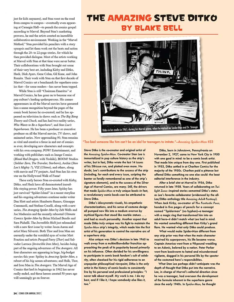 Here’s the final installment of my look back—almost 15 years!—at the Comic-Con publications I edited and designed. These had a print-run of 250,000 copies and were distributed to both the Comic-Con mailing list and to comic shops in the U.S. via Diamond Comics Distributors … all for the amazing price of zero, zilch, nothing; in other words, they were FREE! This time we look at the final two publications I did, Comic-Con Annual #1 (2011) and #2 (2012).