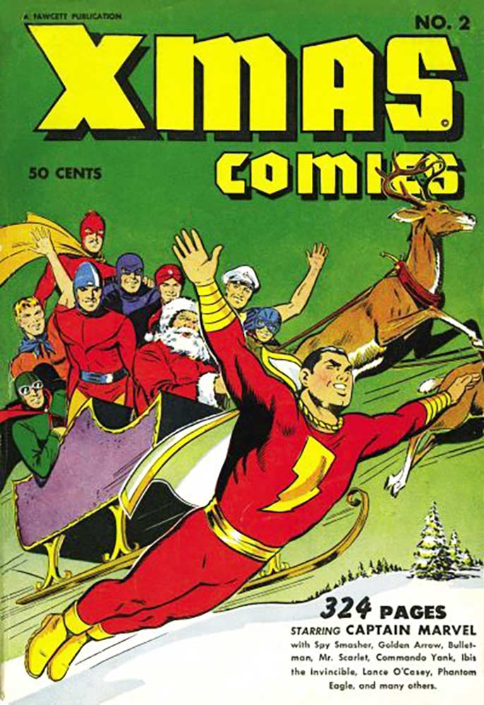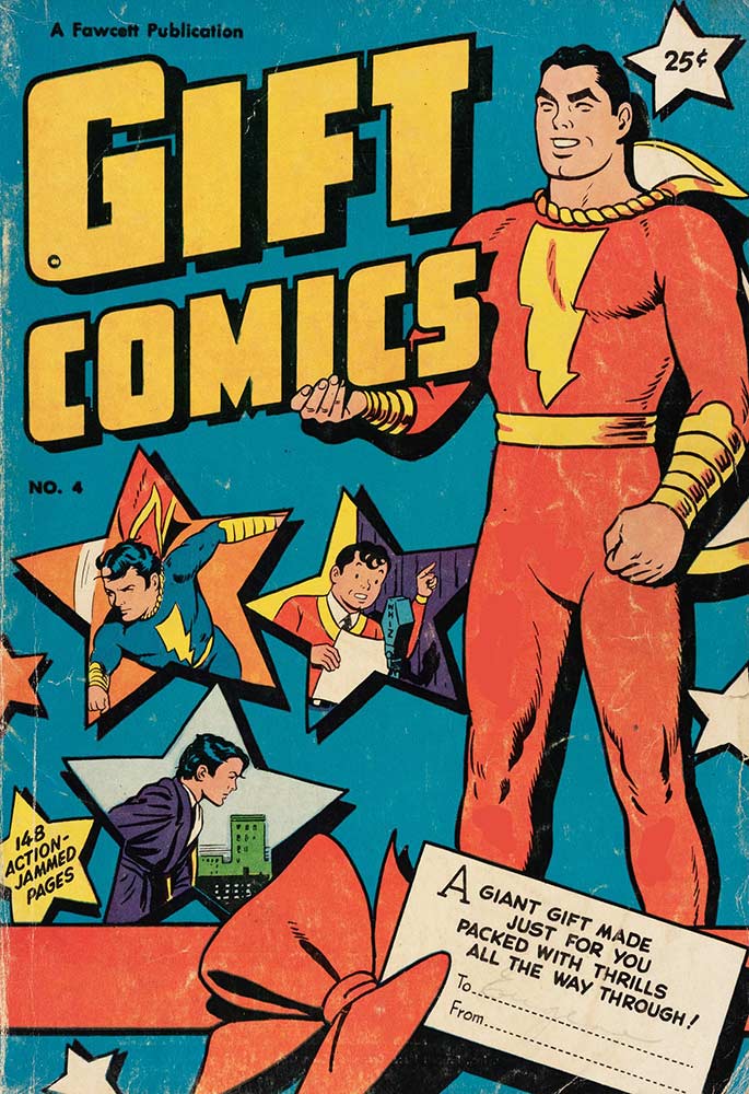 Fawcett’s whopping larger format collections included new stories in America’s Greatest Comics and bound-together returns in books like Xmas Comics and Gift Comics. TM & © DC.