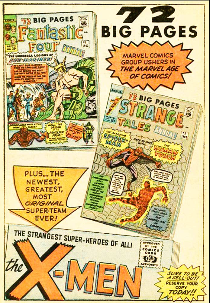 From those humble beginnings, the Marvel Annuals took off over the next five summers. Join us next time when we look at 1964 and 1965, including Fantastic Four Annual #2, Amazing Spider-Man Annual #1, and the start of Marvel’s fondness for reprint-only publications with Marvel Tales Annual #1 (all in 1964), and the wedding of Reed Richards and Sue Storm in Fantastic Four Annual #3, the first—and only meeting to-date—of Spider-Man and Doctor Strange in Amazing Spider-Man Annual #2 by Steve Ditko (and, begrudgingly, that Stan Lee guy), plus the first Thor and Sgt. Fury Annuals in 1965.