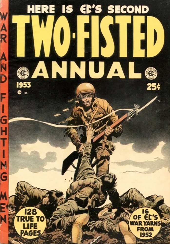 EC Comics published their own annuals in 1952 and 1953 and, like Fawcett, used the returned comics model of collecting comics (four issues) under a new cover. Each EC Annual was different. As editor Al Feldstein put it: “The Annuals were made up of ‘full copy’ returns stored in warehouses. When we had enough of them, I’d do a cover and we’d bind in four issues with a new cover. The selection was random, so your copy of Tales of Terror #1 might be different from my copy of Tales of Terror #1.” There were three Tales of Terror Annuals, two Weird Science-Fantasy Annuals, and two Two-Fisted Tales Annuals.