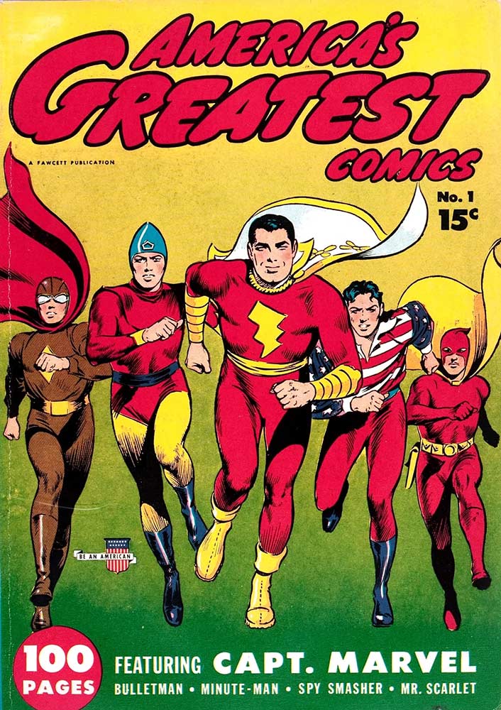 Fawcett’s whopping larger format collections included new stories in America’s Greatest Comics and bound-together returns in books like Xmas Comics and Gift Comics. TM & © DC.