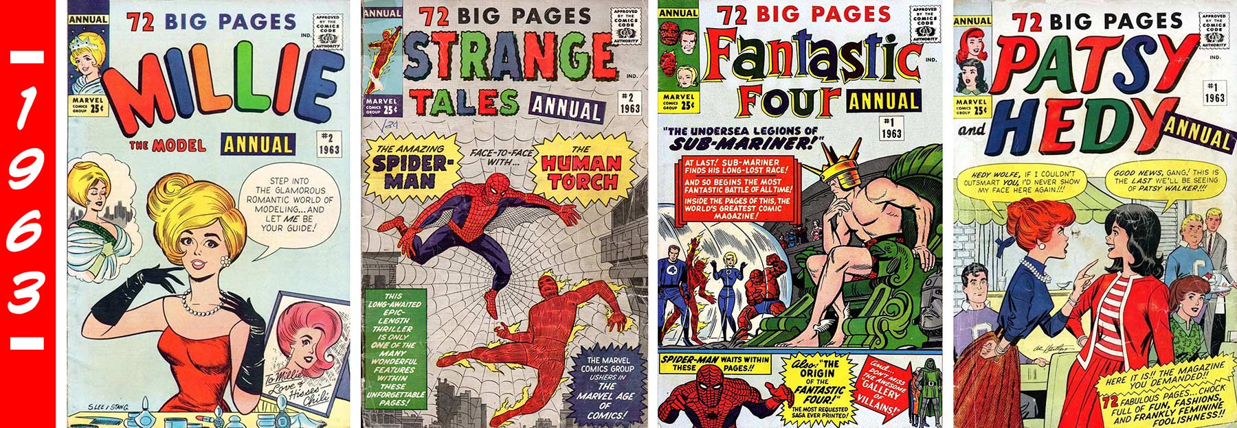 From those humble beginnings, the Marvel Annuals took off over the next five summers. Join us next time when we look at 1964 and 1965, including Fantastic Four Annual #2, Amazing Spider-Man Annual #1, and the start of Marvel’s fondness for reprint-only publications with Marvel Tales Annual #1 (all in 1964), and the wedding of Reed Richards and Sue Storm in Fantastic Four Annual #3, the first—and only meeting to-date—of Spider-Man and Doctor Strange in Amazing Spider-Man Annual #2 by Steve Ditko (and, begrudgingly, that Stan Lee guy), plus the first Thor and Sgt. Fury Annuals in 1965.
