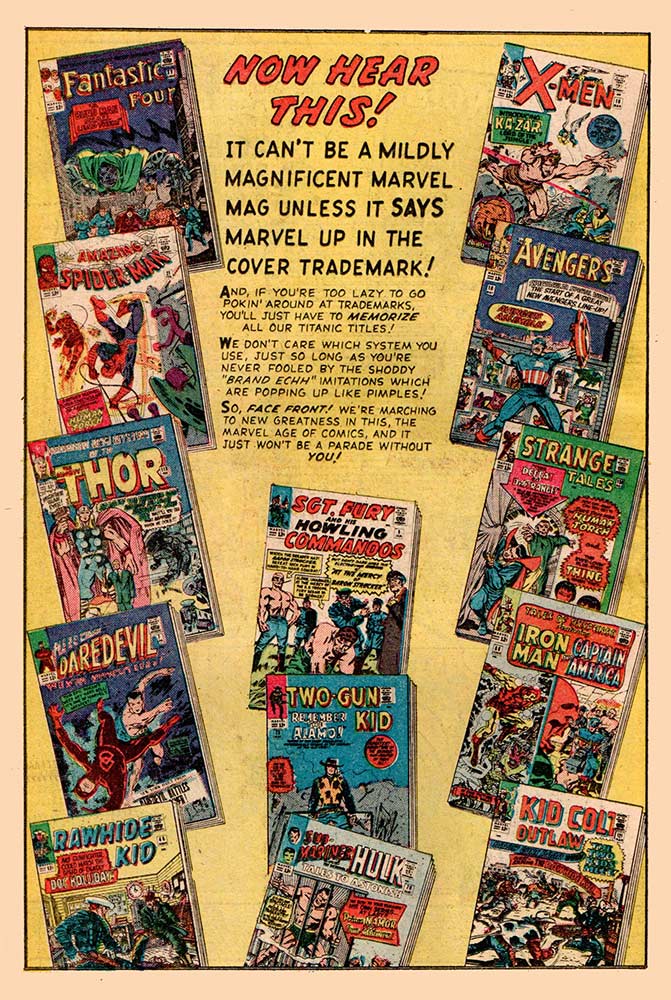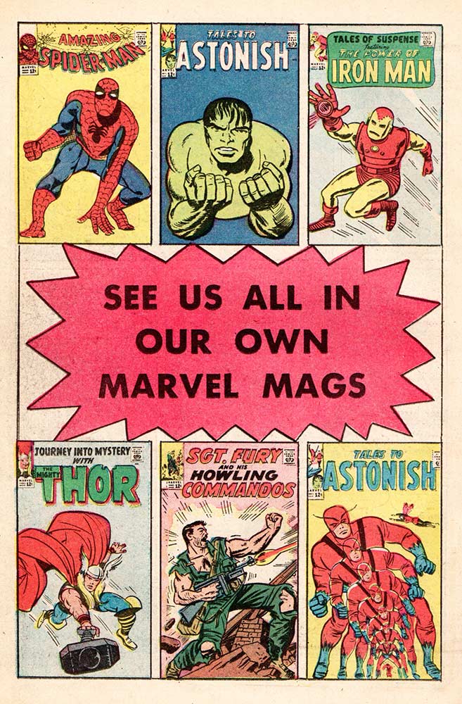 A trio of ads appearing in Marvel Annuals in 1965, including one touting the entire line (far right).