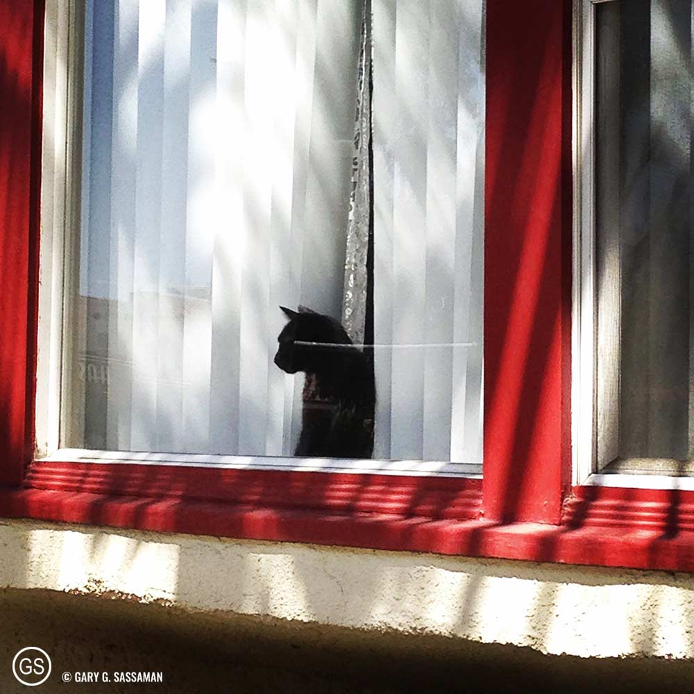 I snapped this lonesome black cat watching the world go by on a walk many years ago, when I still lived downtown. This little guy (or gal, let’s maintain a little mystery) was in a window up on the cusp of Hillcrest, a neighborhood north of downtown. What’s going on in that mind: “I’m hungry? Where are they? Who’s that? I hate that dog?”