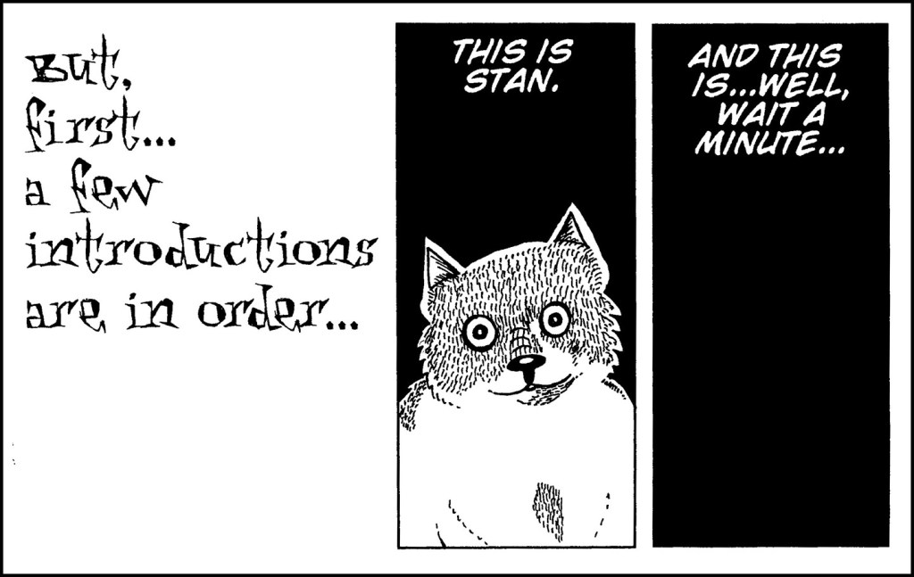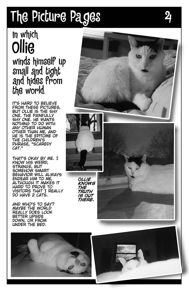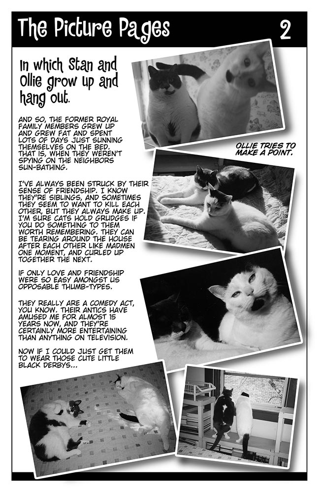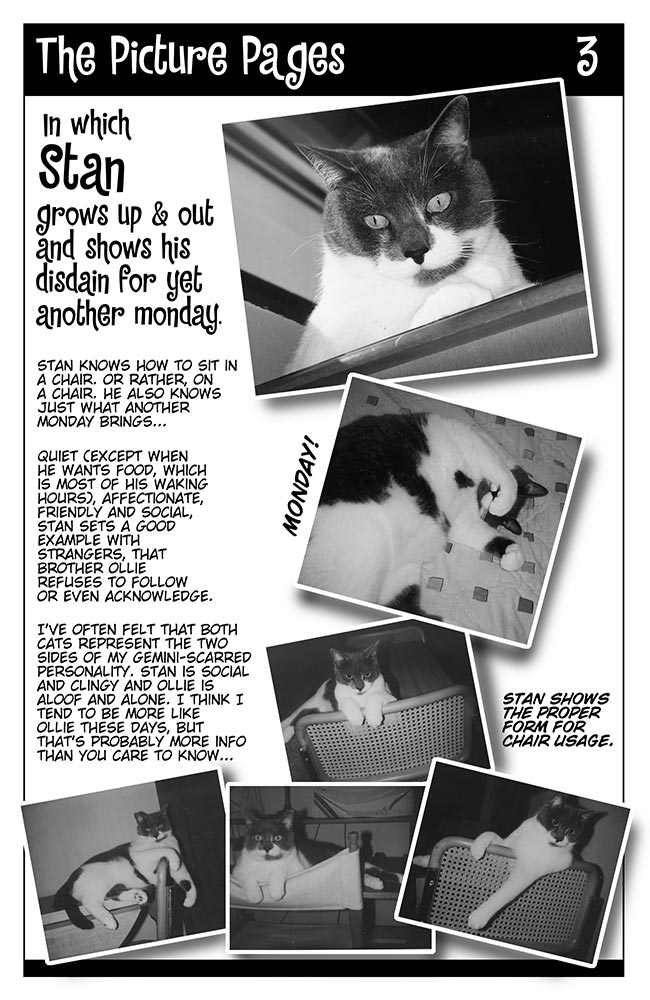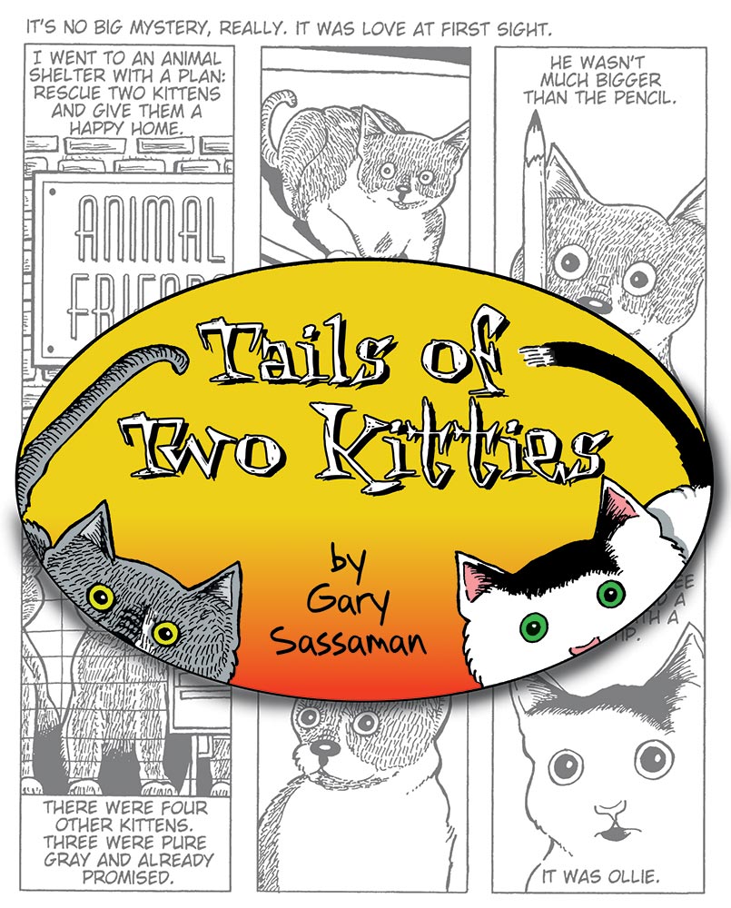 Over the next month I’m going to share with you (lucky you!) Tails of Two Kitties, or at least the chapters I completed. This week it’s the early art and the introduction of my cats, Stan and Ollie, plus some other ancillary pages, including four black and white “picture pages” I created for the Fuzzheads special. I enjoyed looking over this forgotten chapter in my life and I hope you do, too.
