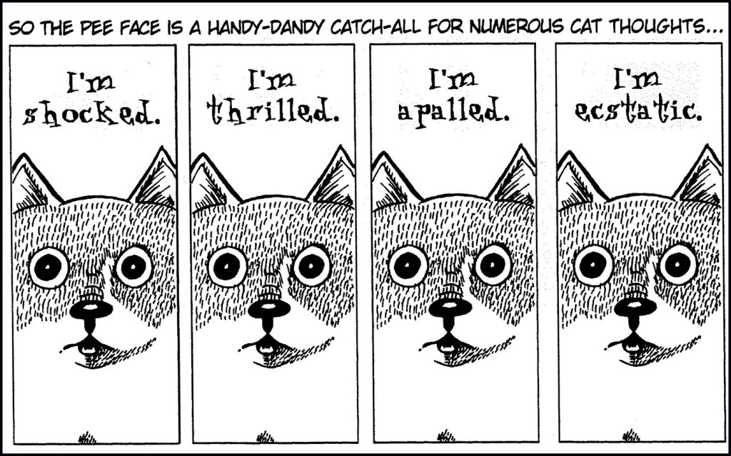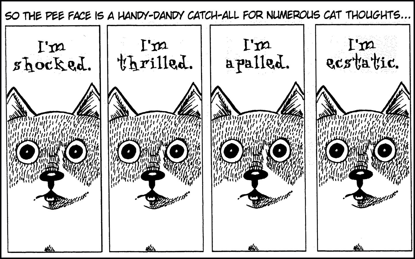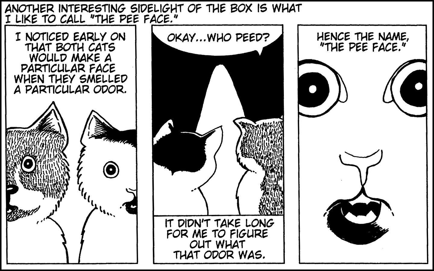 An ancillary byproduct of the litter box (both inside and out) was something I called “The Pee Face,” a particular look on both cats’ faces when they smelled … well, pee. It was one of shock and awe.