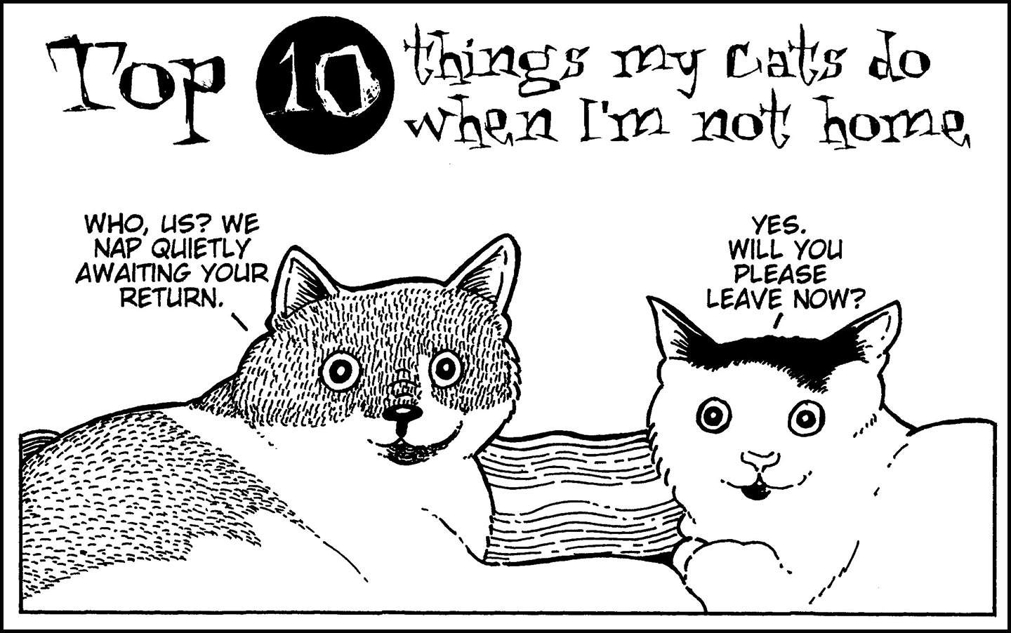 Next time: The final completed chapter, “Top 10 Things My Cats Do When I’m Not Home.”