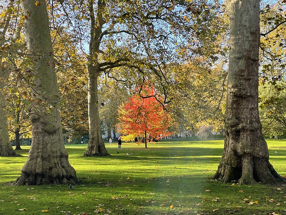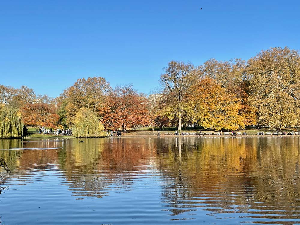I ended my day with another walk across the Westminster Bridge and it was wall-to-wall people. Saturdays in London are no fun anymore, especially on a big shopping weekend like Black Friday. I bypassed the Green Park Tube station and walked back through Green Park and into St. James Park (where I got enthralled with the fallen leaves lying on the ground), then over the bridge to Bankside. My trip was pretty much over. It was time to pack and get ready for the 11-hour flight home on the next day.