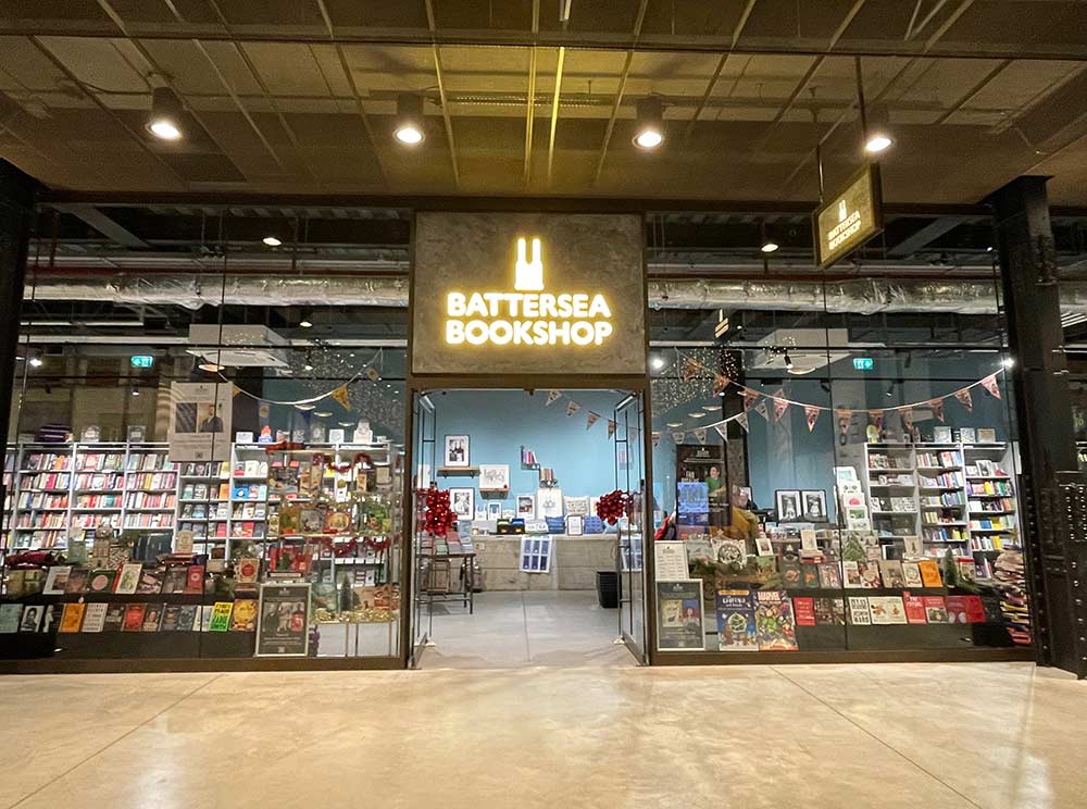 Saturday, November 18th was my last full day in London, and it started as a cold, dreary, rainy day. It had rained for most of the night. Bypassing my usual Tube station, Southwark, I walked through The Cut to Waterloo, home of the noodles and Cuban restaurant signs. My mission today was to visit Battersea Power Station. Like the Tate Modern, Battersea is an old, abandoned power station, in disuse for decades, which has been refurbished and repurposed into an entertainment, shopping, and living center. It has echoes of the Tate, with its large turbine halls and control rooms (the latter cleverly turned into a restaurant). It’s really a beautiful place, and it was all decked out for Christmas, so more photos next week in our final UK Photo Diary installment, focusing on the holiday decorations I saw on my trip. Battersea also had a very nice bookstore, aptly called Battersea Bookshop.