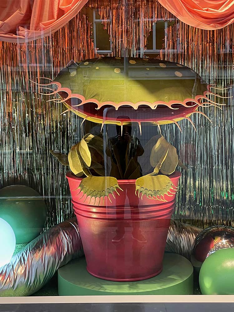 My other goal was to go to Selfridges Department Store and have lunch in Harry Gordon’s Bar in the lower level, where last year I had the best scallops I’ve ever tasted. Unfortunately, Harry didn’t want to comply with my wish (scallops were not on the menu), so I left in a huff, snapping only one photo of the cinema entrance (seriously … a department store with their own movie theater? I think I’m in love!), which was all now we don our gay apparel, decoration-wise.