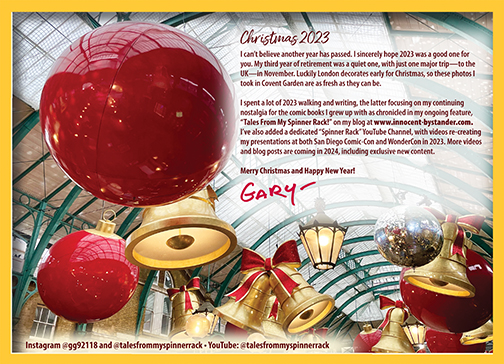 No, I’m not Tiny Tim, but I do want to wish all my followers and those who have just stumbled upon me a very Merry Christmas and the best of everything for 2024. 2023 was an interesting year for me, both good and bad, but I’m grateful for all of you who have decided to poke your head in my window and see what I’m up to on here, and on my Instagram and the Official Tales From My Spinner Rack! YouTube Channel. Please keep coming back and use the links below to follow me if you’re not already.