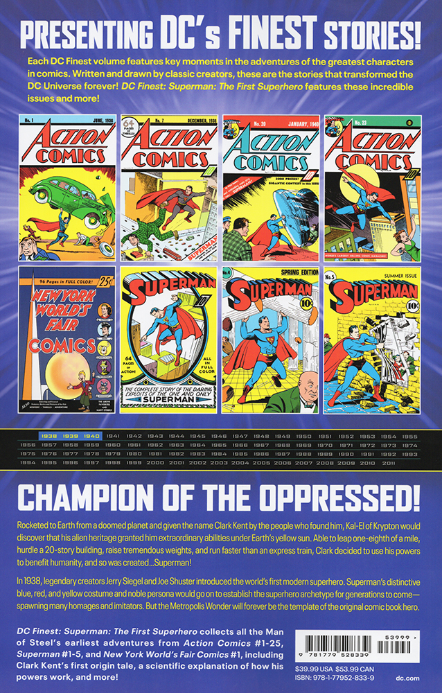 DC Finest’s year chart on each volume’s back cover solves the age-old problem of having to collect them all; (below) the spine also features the years featured in each volume.