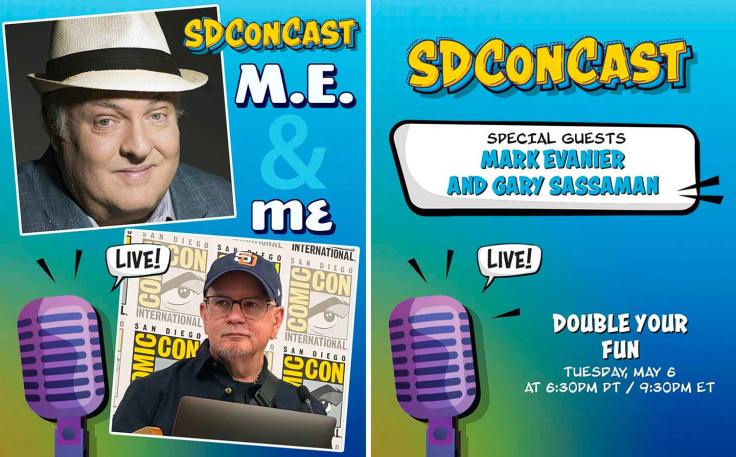 Watch the Season 14 premiere of SDConCast, the official podcast of the San Diego Comic-Con Unofficial Blog, kicking off this season with its annual tradition featured special guest, moderator extraordinaire and writer, Mark Evanier (newsfromme.com). But there’s a twist! Also joining iwas returning guest Gary Sassaman (that’s me!), former director of multiple departments at Comic-Con International, including Programming (2000-2007) and Publications (2007-2021), though these days you can find Gary telling Tales From My Spinner Rack! on YouTube and right here on this very blog that you’re reading now! We discussed memories from past cons, what our plans are for this year, and more. The SDConCast crew also covered the latest SDCC news.
