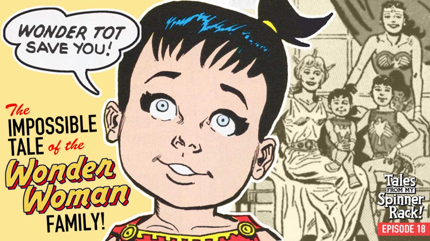 “WONDER TOT SAVE YOU! The Impossible Tale of the Wonder Woman Family” is episode 18 of Tales From My Spinner Rack! with a look back at that wonder of a woman, Wonder Woman, and her 1960s run of comics featuring her “Family:” Wonder Queen, Wonder Girl, and the Amazing Amazon toddler known as Wonder Tot!