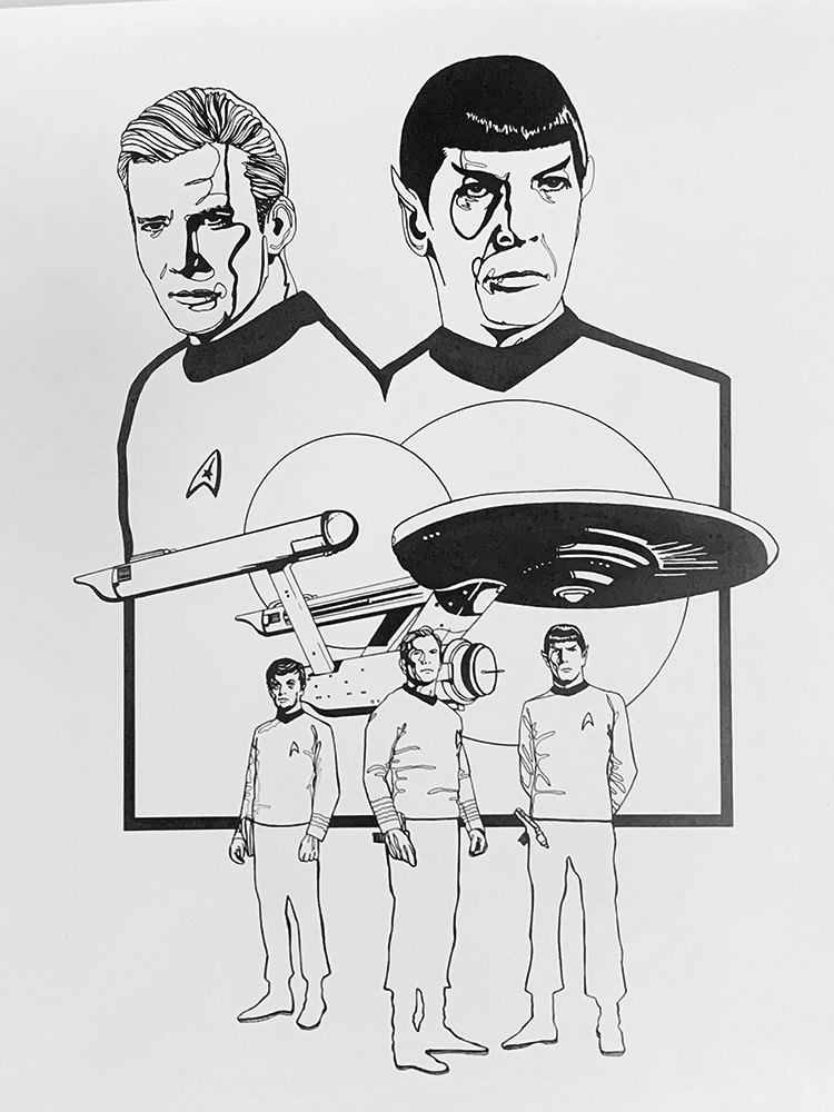 I had done a black-and-white illo of Kirk and Spock in their TV show uniforms, with an accompanying color rough, and Shooter loved it, taking me to see magazine line editor Rick Marschall, who seemed resistant to his boss basically shoving me down his throat. But we made a deal: I would create a full-color “frontispiece” for the inside front cover of Marvel Super Special 15, for the princely sum of $100.