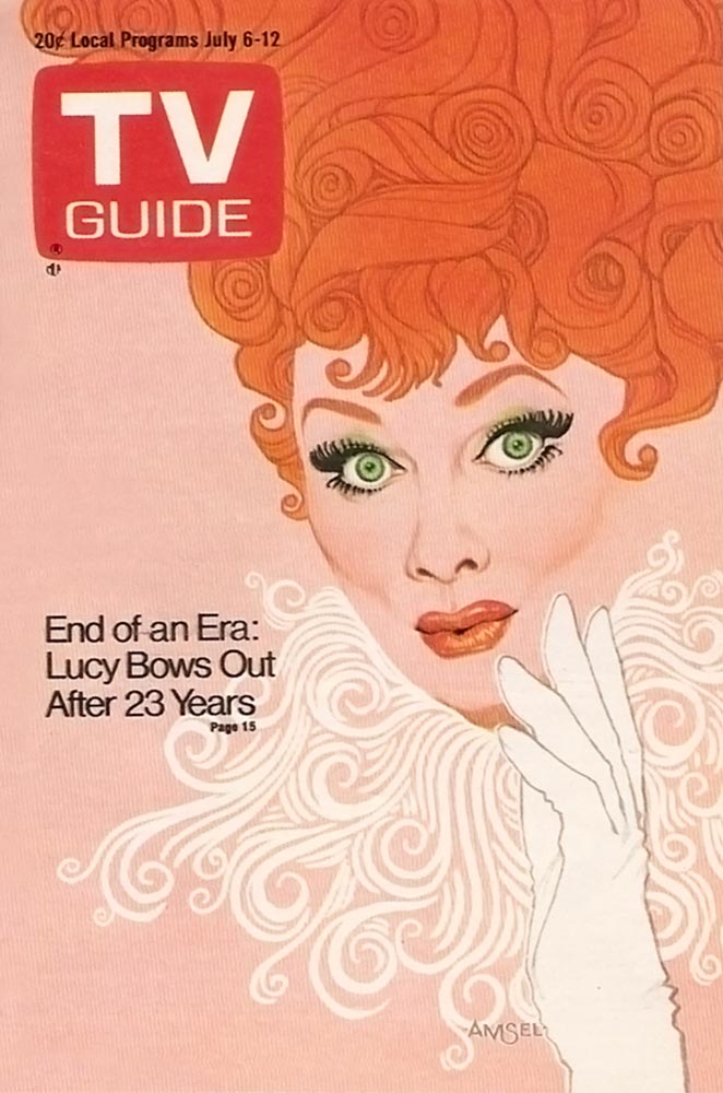 My Alan Alda drawing that got Shooter’s attention; and me trying my best Richard Amsel imitation (far right). Amsel’s Lucy illustration is just one of his classic TV Guide covers.