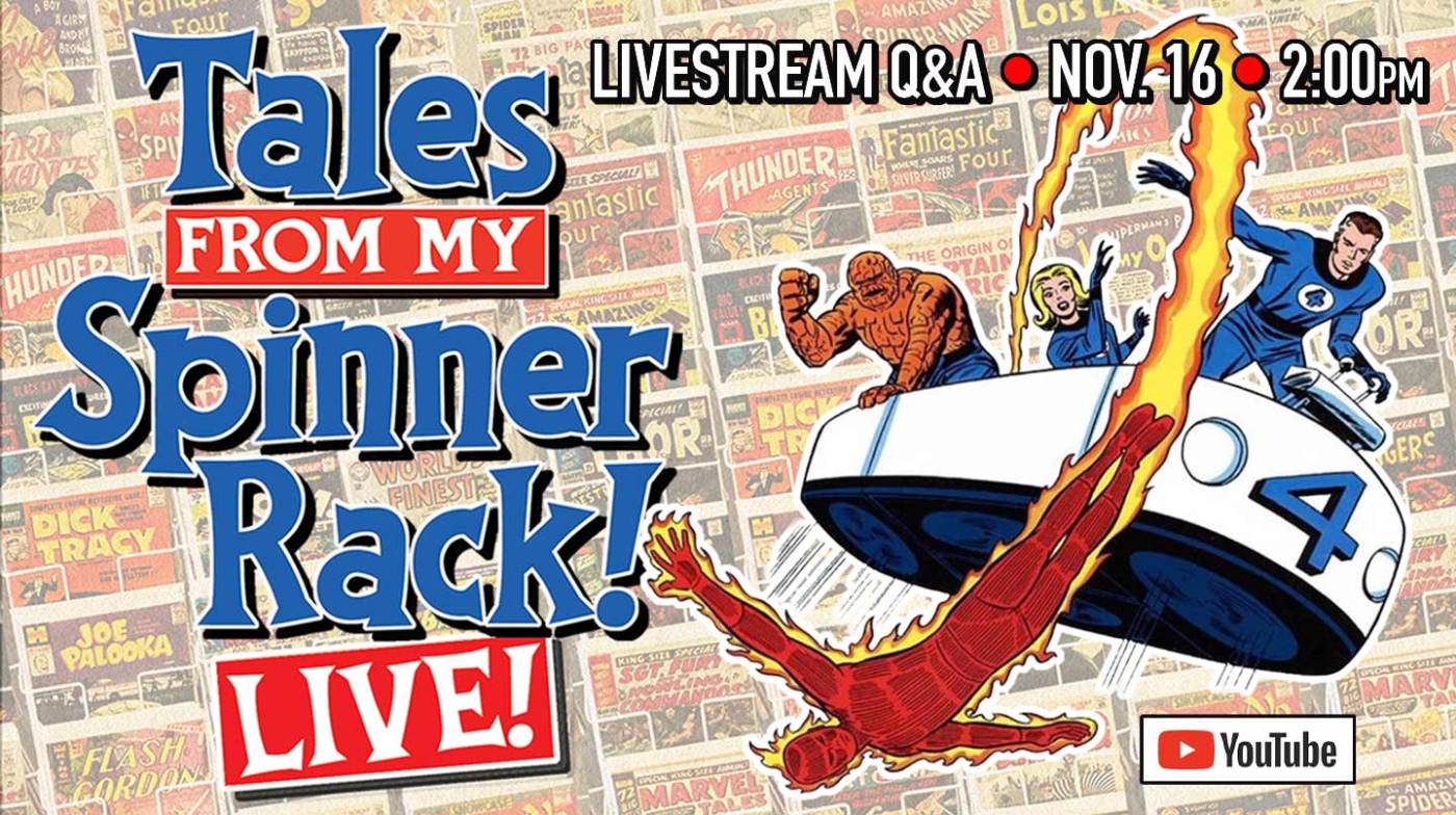 In celebration of our second anniversary and our 3500th subscriber, please join me for the very first Tales From My Spinner Rack Livestream on YouTube, Sunday, Nov. 16 at 2:00 PM (Pacific time), 5:00 PM (Eastern)!