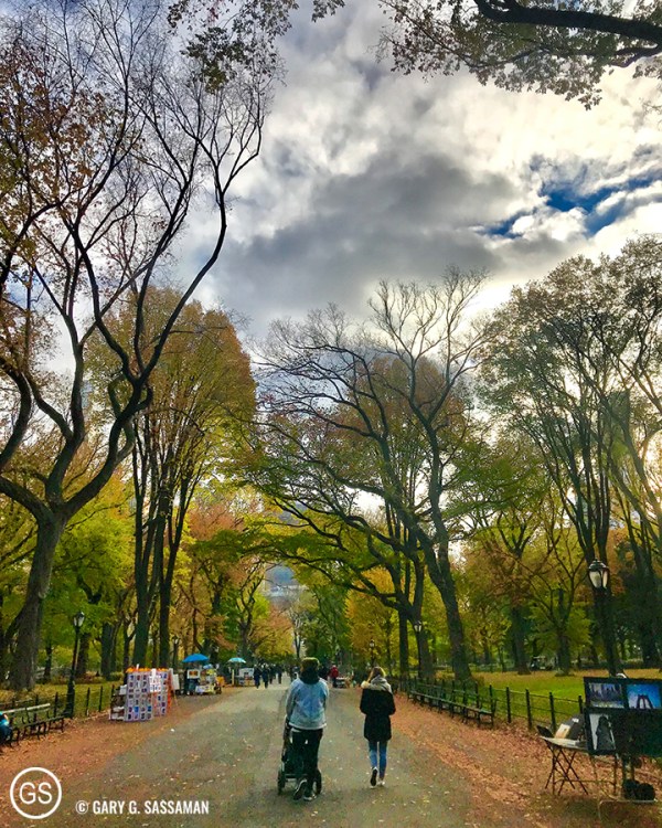 Central Park in New York City on a cool, breezy fall day, where the trees haven't quite turned yet, but some are already gone, baby, gone. This is one of my favorite parts of the park, the Mall, a long expanse that you can walk or sit a spell and people-watch. It's sides are festooned... Continue Reading →
