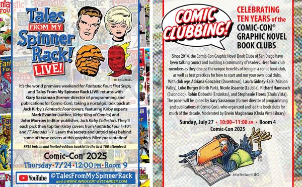 Tales From My Spinner Rack LIVE! returns to Comic-Con International with a special panel presentation looking back at “Our Favorite Fantastic Four Covers by Jack Kirby” from the artist’s run on the title from 1961 through 1970! The panel will be on Thursday, July 24 at 12:00 PM in Room 9. Moderator Gary Sassaman will... Continue Reading →